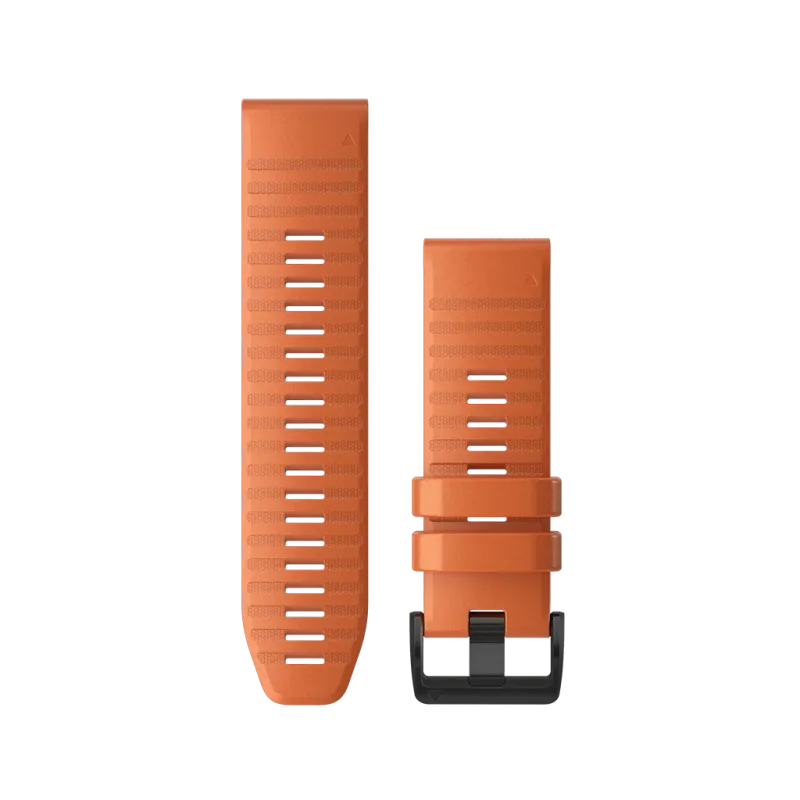 Denne oransje silikonremmen passer for Garmin-modeller som har 26 mm i bredde mellom lugsene. Se spesifikke modeller under.