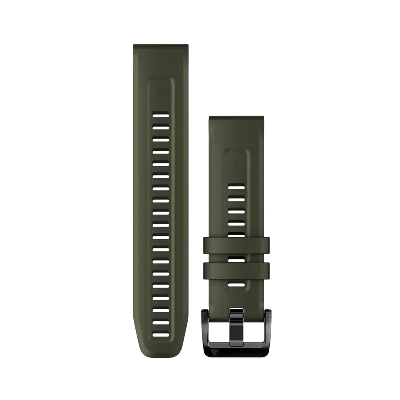 Denne mosefargede silikonremmen passer for Garmin-modeller som har 22 mm i bredde mellom lugsene. Se spesifikke modeller under.