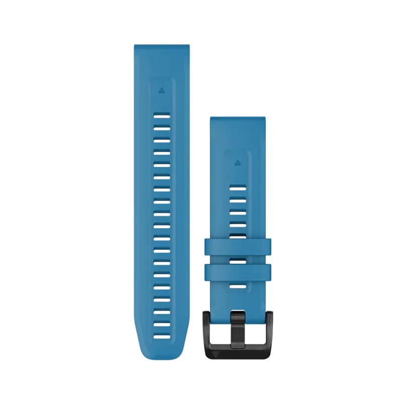 Denne himmelblå silikonremmen passer for Garmin-modeller som har 22 mm i bredde mellom lugsene. Se spesifikke modeller under