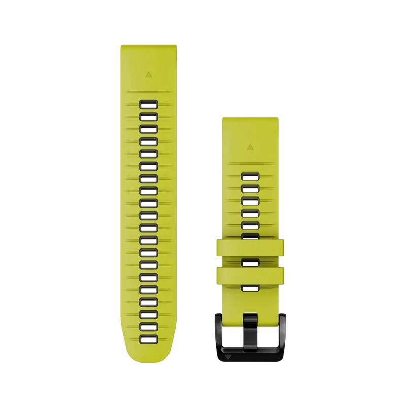 Denne Electric Lime/grafittfarget silikonremmen passer for Garmin-modeller som har 22 mm i bredde mellom lugsene. Se spesifikke modeller under.