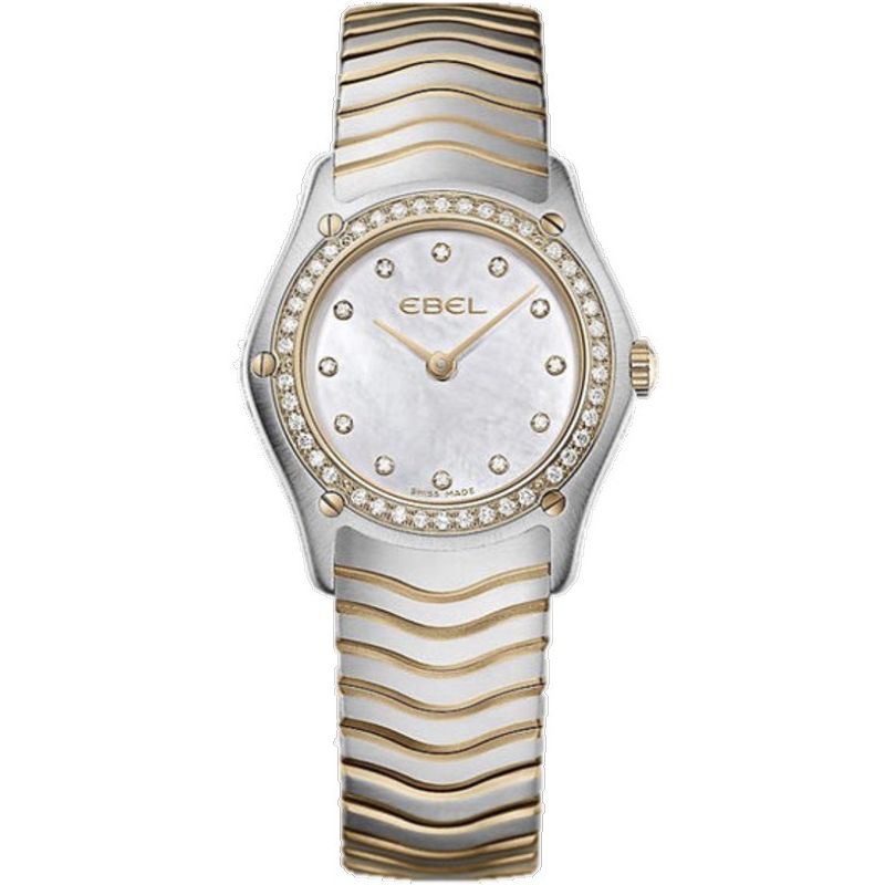 Et eksklusivt og imponerende dameur. Bezelet består av 18 karat rose gull med 42 diamanter. Urskiven har ytterligere 12 diamanter som indekser - 0.396 karat. Til tross for dette er uret vanntett 50 meter. Lenken er gullbelagt i samme tone - dett gir et eksklusivt to-tonet uttrykk. Foldespennen er også 18 karat gull. Ebel Caliber 256 quartz verk.