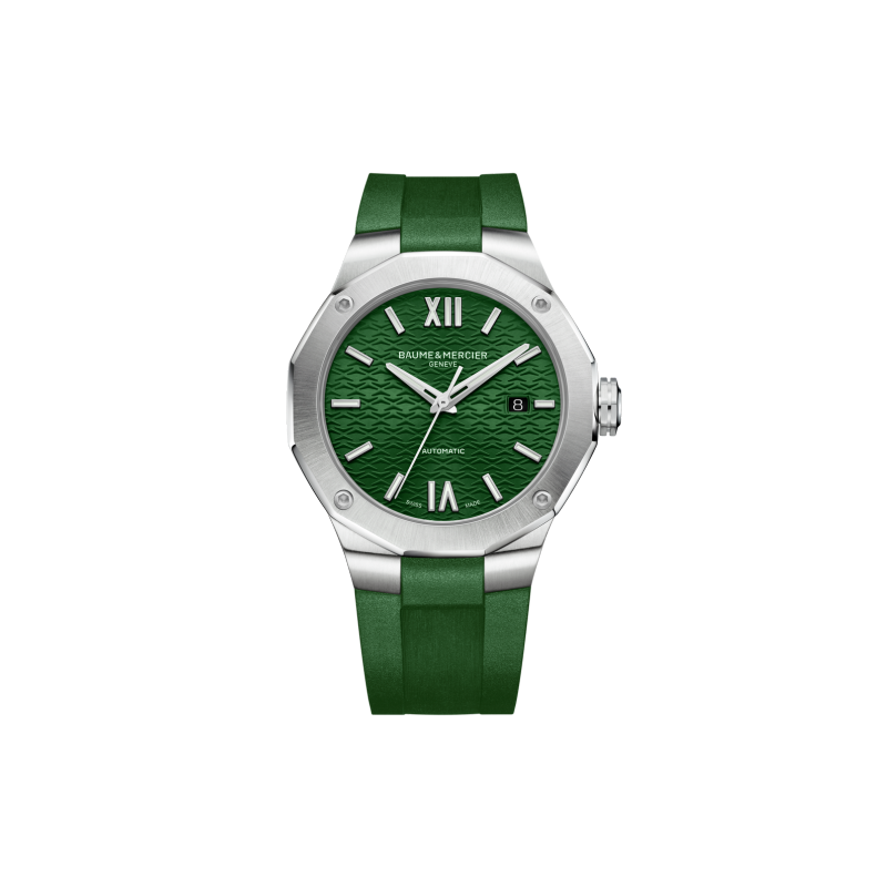 Baume & Mercier Riviera 10618 er et 42 mm armbåndsur til herre med en dypgrønn urskive, datovisning ved klokken 3, og tolvkantet ramme utstyrt med fire skruer. Utstyrt med et "swiss-made" automatisk urverk, og klokken har safirglass med antireflekterende belegg, og kommer med en grønn gummirem. Vanntett ned til 100 meter.