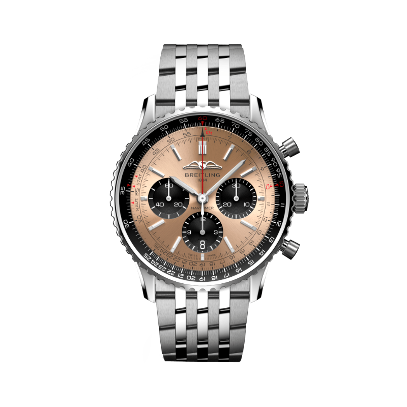 Den klassiske Navitimer kommer i en sporty 43mm kasse som løfter frem det funksjonelle designet til klokken. Med mulighet gjennom den integrerte regnelinjalen til å gjøre kalkuleringer nødvendig for trygg flyving er dette en klokke laget for luftfart og flyving. Gjennom baklokket av safirglass finner man det selvopptrekkende in-house B01 urverket.