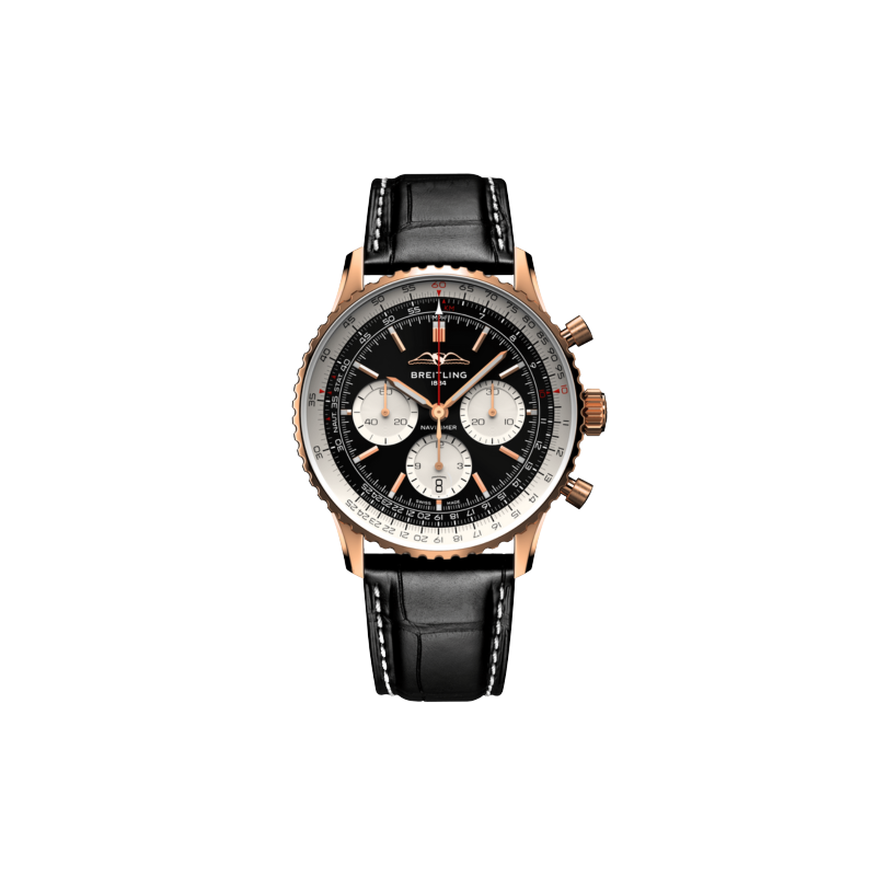 Den klassiske Navitimer kommer i en elegant 43mm kasse i 18k rødt gull som løfter frem det funksjonelle designet til klokken. Med mulighet gjennom den integrerte regnelinjalen til å gjøre kalkuleringer nødvendig for trygg flyving er dette en klokke laget for luftfart og flyving. Gjennom baklokket av safirglass finner man det selvopptrekkende in-house B01 urverket.