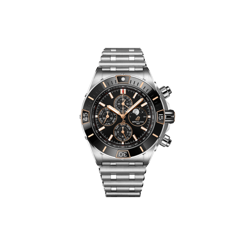Breitlings superladede klokke for enhver aktivitet, med en fireårskalender. Super Chronomat er inspirert av den originale Chronomat fra 1980-tallet som Breitling skapte for hotshots av aerobatiske skvadroner. Super Chronomat er den dristigste av alle Chronomat-klokker, og har flere keramiske deler – på rammen, på kronograf-skyvere og på kronen – samt en Rouleaux-inspirert gummirem.