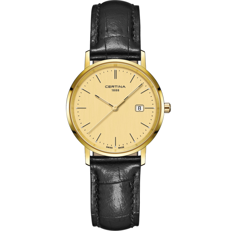 Certina Priska 18K Gull, 29 mm med reim i skinn. Safirglass med antireflekterende belegg.