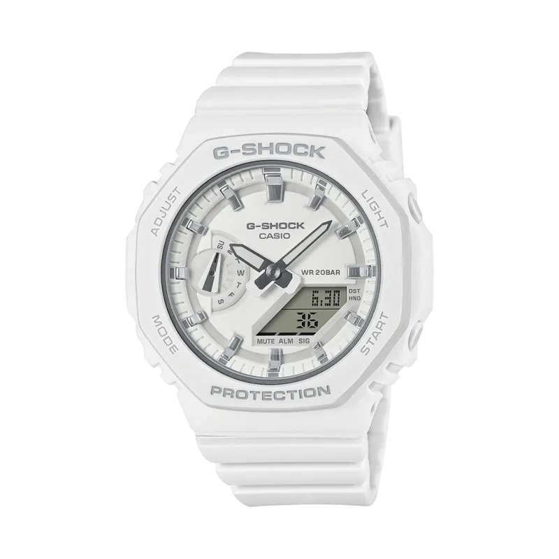 Støtsikker klokke med LED-lys, fluoriserende visere og automatisk kalender. Fem alarmer for viktige påminnelser. Robust kasse i resin og karbon, beskyttet av mineralglass. Slitesterk rem og batteritid på opptil 3 år. Vanntett til 200 meter.