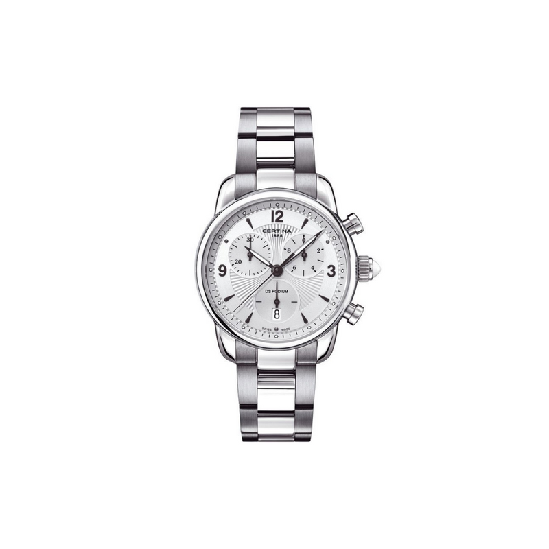 Denne modellen er et 34,5 mm armbådnsur til dame med sølvfarget skive og stållenke. Drives av et quartzverk og er vanntett ned til 100 meter.