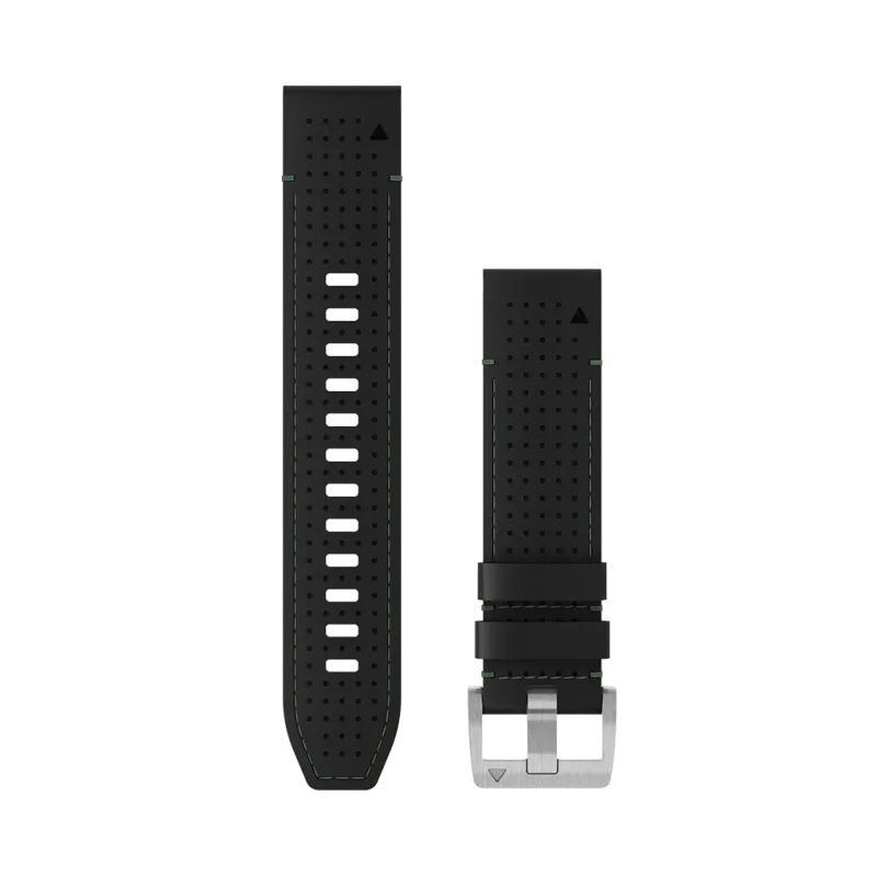 Denne sorte/grønne hybridremmen i skinn passer for Garmin-modeller som har 22 mm i bredde mellom lugsene. Se spesifikke modeller under.