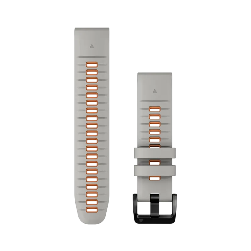 Denne tåkegrå/oransje silikonremmen passer for Garmin-modeller som har 22 mm i bredde mellom lugsene. Se spesifikke modeller under.
