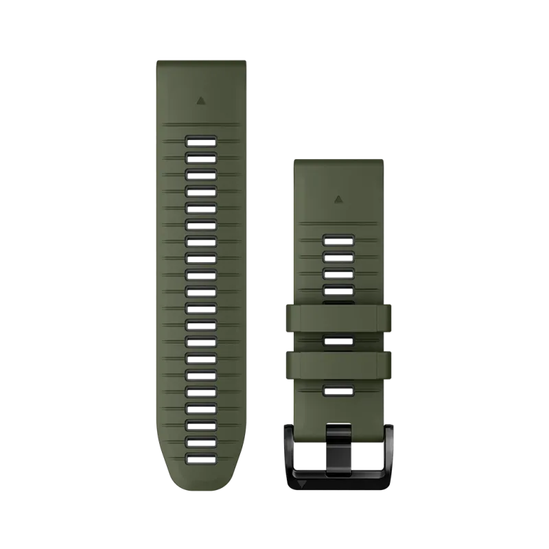 Denne mosegrønne silikonremmen passer for Garmin-modeller som har 26 mm i bredde mellom lugsene. Se spesifikke modeller under.