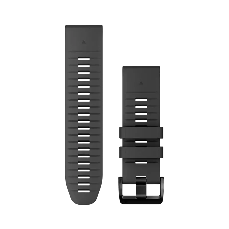 Denne grafittfarget silikonremmen passer for Garmin-modeller som har 26 mm i bredde mellom lugsene. Se spesifikke modeller under.