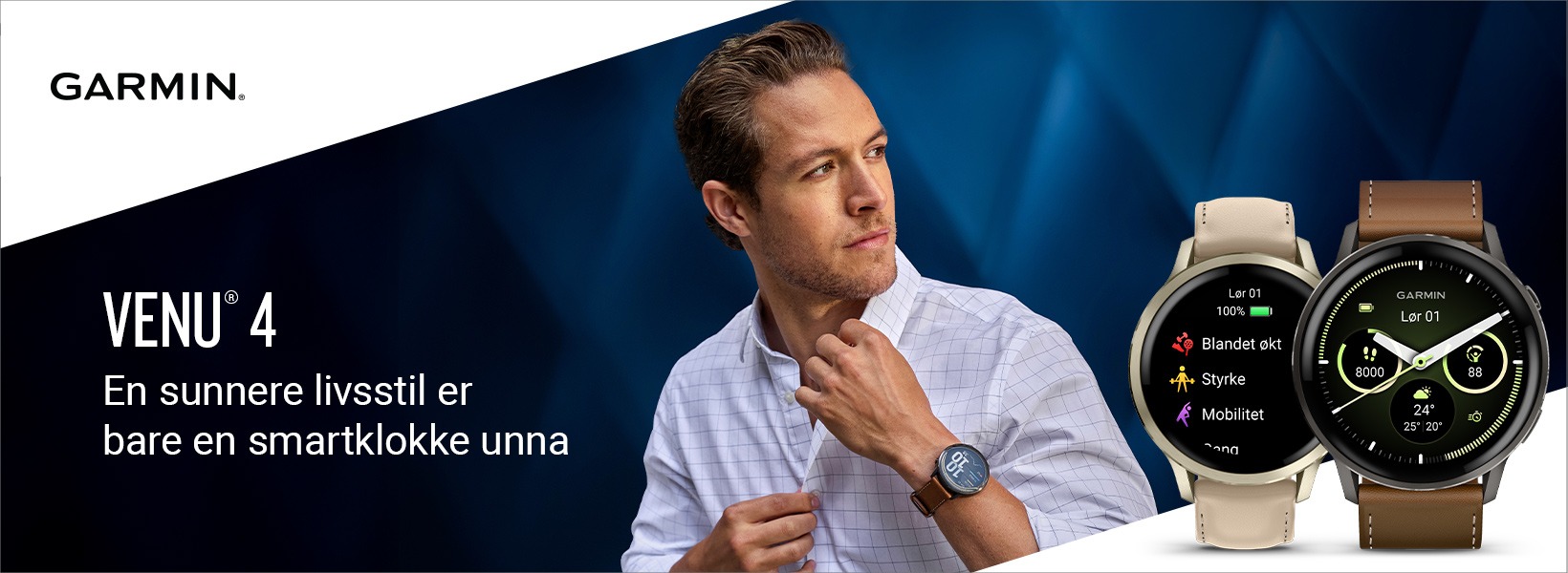 Venu 4 GPS-smartklokken er spesialbygd med avanserte helse- og treningsfunksjoner, og er din støtte rett på
