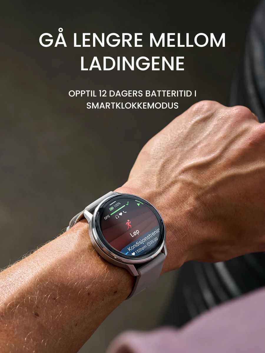OPPTIL 12 DAGERS BATTERITID I SMARTKLOKKEMODUS