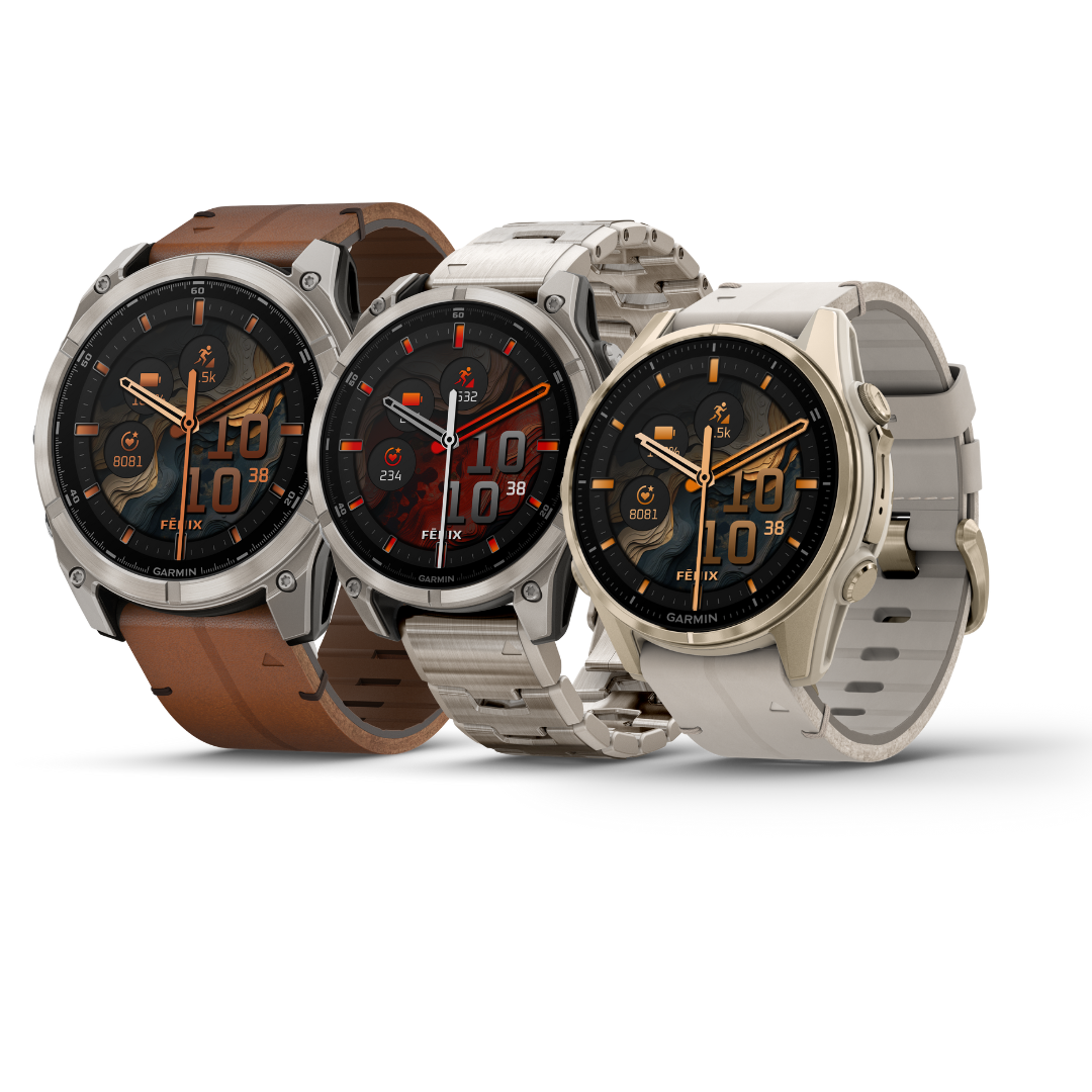 Til herre er det bestselgeren fenix 8 som favner bredest. Fenix 8 kommer i to størrelser; 47mm og 51mm med AMOLED-skjerm. Modellene med brun skinnrem og titanlenke kommer i tillegg med en mørkgrå silikonrem i esken. For de spesielt interesserte har vi toppserien MARQ (gen 2), som kommer med modeller i både titan, karbon og damaskusstål for golfspilleren, seileren, fjellgåeren, flygeren eller løperen.