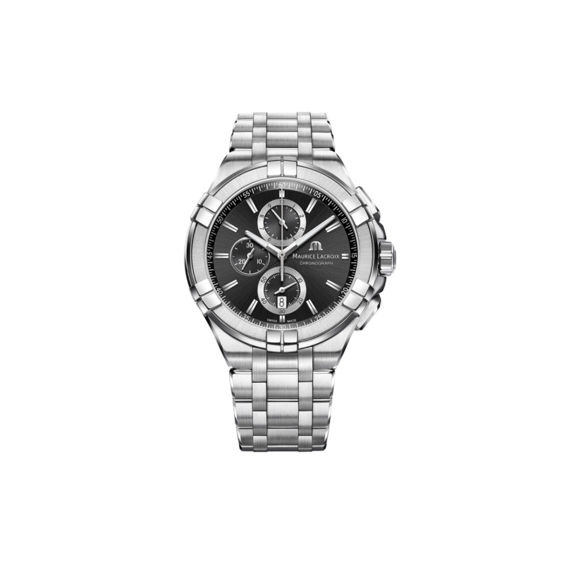 Takket være urkassedesignet gir denne klokken utmerket lesbarhet og leverer eksepsjonell brukerkomfort. Dette er en klokke utstyrt med en praktisk stoppeklokkefunksjon, som er ideell for å måle medgåtte tidsperioder når sekunder betyr noe. Klokken har en solbørtet sort skive og har en lenke i rustfritt stål. Klokken drives av et quartzverk og er vanntett ned til 100 meter.