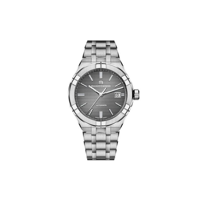 Kjent for sin høykvalitetsdesign og sin innovasjon, har klokkemerket Maurice Lacroix jobbet med AIKON for å gi den finish av uovertruffen oppfattet verdi. Hver kurve, fasett, linje og overflate har blitt raffinert og modellene har et rent utseende. Denne modellen har en grå skive og stållenke. Urverket i klokken er calibre ML115 som er et automatikkverk med 38 timers gangreserve. Vanntett ned til 200 meter.