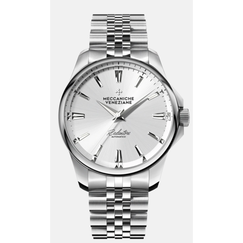 Meccaniche Veneziane Redentore 36mm, automatikk-ur til både dame og herre, kasse og lenke i stål, sølv urskive med visere og indekser i stål, 10 bar