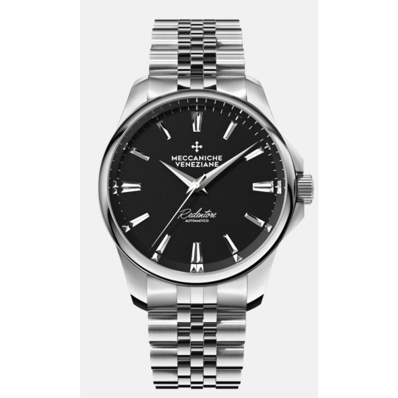Meccaniche Veneziane Redentore 36mm, automatikk-ur til både dame og herre, kasse og lenke i stål, sort urskive med visere og indekser i stål, 10 bar.