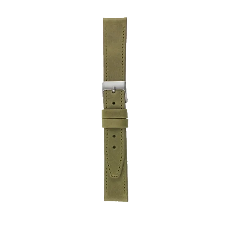 Pebro grønn skinnrem med søm i ytterkantene. Denne remmen har en lengde på 195 mm.