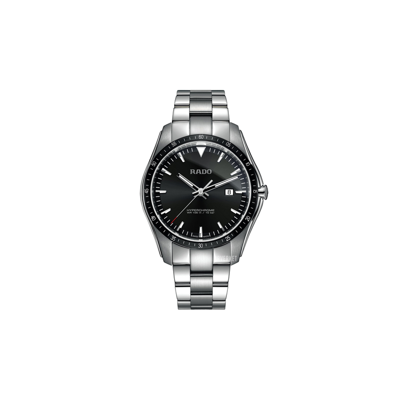 Rado Hyperchrome Sort batteriklokke er en klassisk og elegant herreklokke. 45mm, selvlysende visere, safirglass, 10 bar. Kassemateriale: Keramikk, stål.