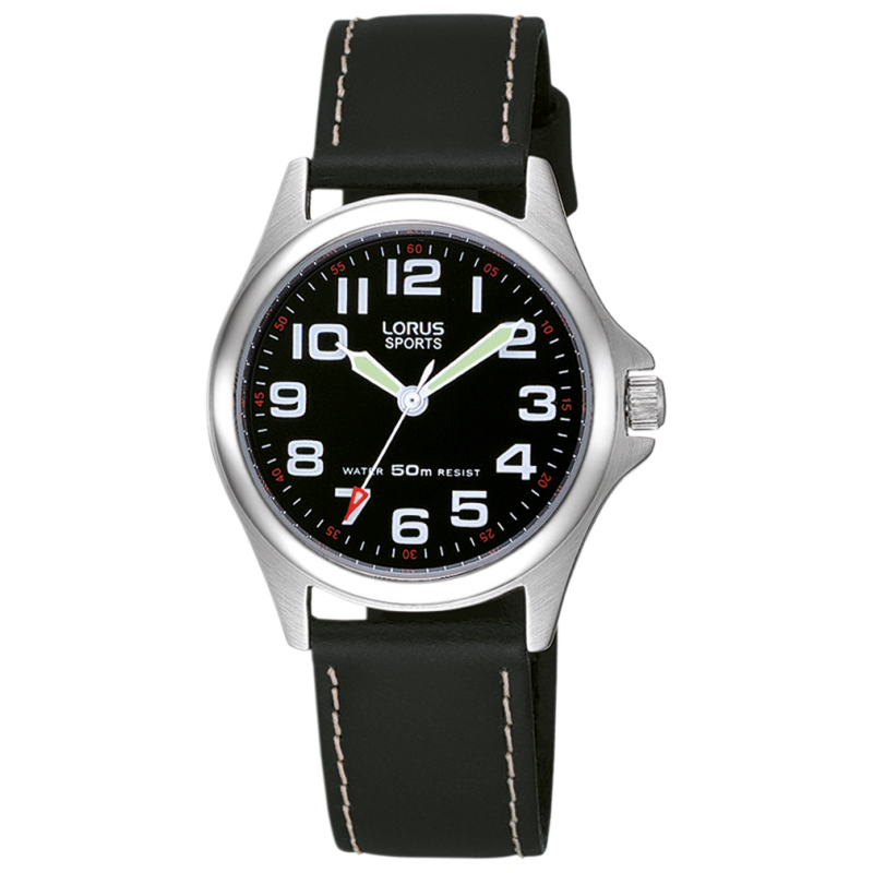 Lorus Kids RRS53LX9. Tøff barneklokke med hvit skive og sort skinnreim. Quartz urverk.