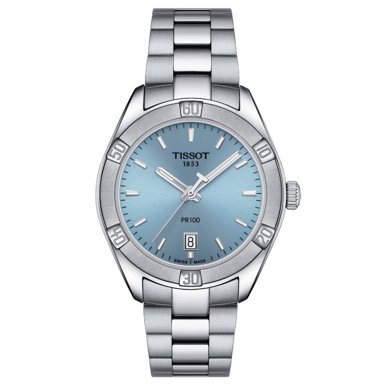 Tissot PR 100 Lady Sport Chicer etarmbåndsur for dame. Safirglass som gjør den ekstremt motstandsdyktig mot slag og overlegen skjerm- og håndlesbarhet takket være dens gjennomsiktighet. SuperLumnova sikrer at visereog indekser er enkle å se i mørket. Vanntett ned til 100 meter.