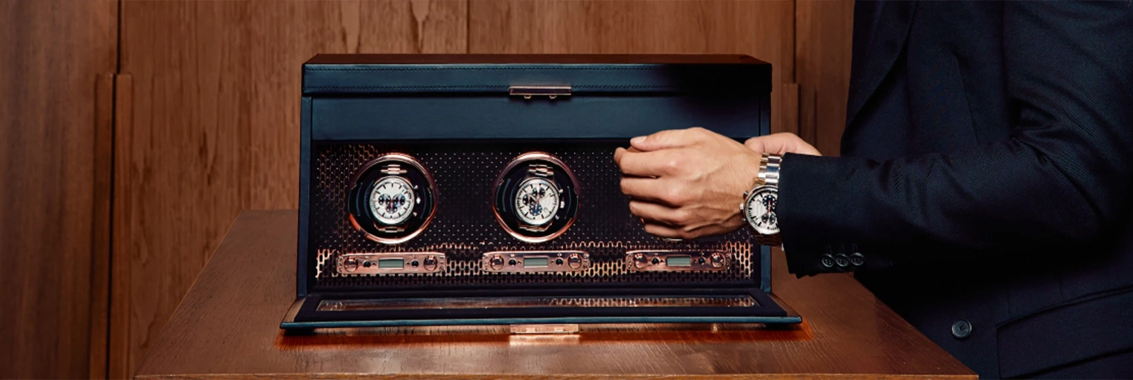 WOLF 1834 er et symbol på britisk luksus og presisjon, med over 185 års erfaring i å skape elegante og funksjonelle klokkeskrin, watch winders og tilbehør. Hver detalj er nøye utformet med håndverk i fokus, for å beskytte og fremheve dine mest verdifulle klokker og smykker. Oppdag WOLF 1834 – der sofistikert design møter innovasjon og kvalitet i ypperste klasse.